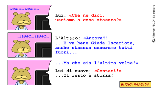 L'Alt(r)o: «Ma insomma Giuda Iscariota ora basta! È tutto il giorno che provi a baciarmi... Che ti piglia oggi?»